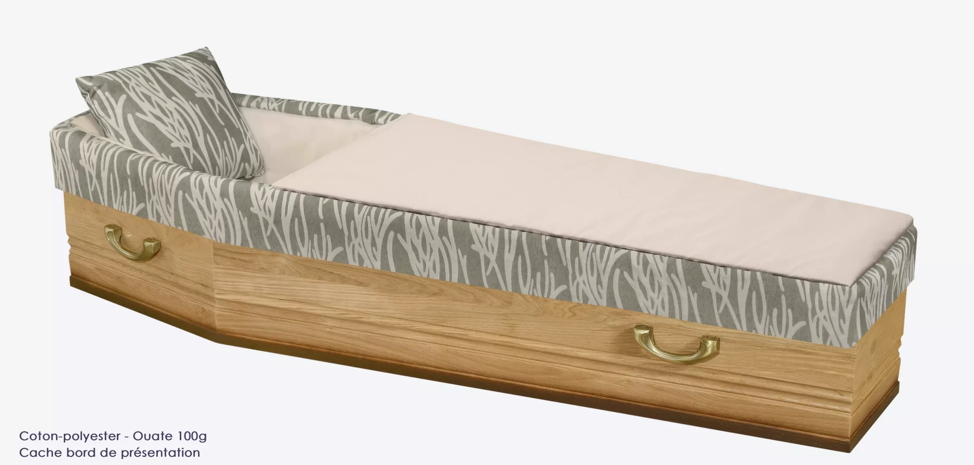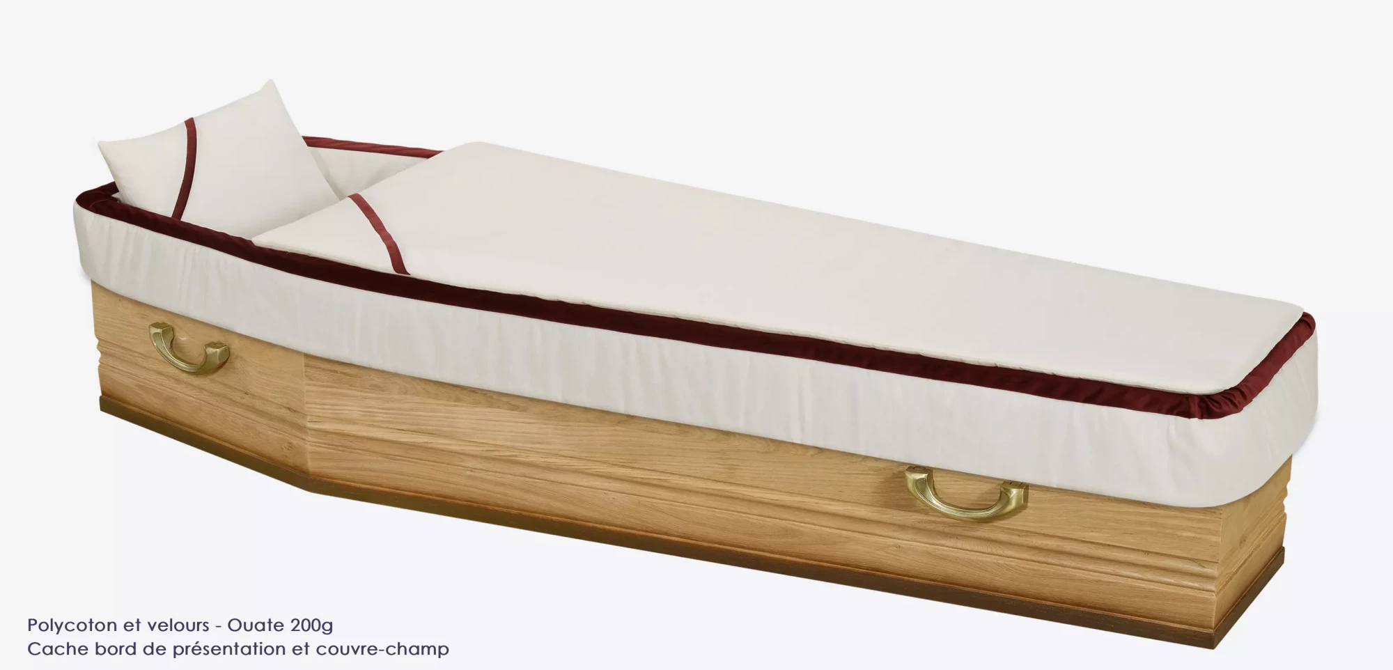 Découvrez l’ensemble de nos capitons funéraires (voir les disponibilités en agence). Choisissez un modèle qui viendra personnaliser les parois du cercueil et rendre votre hommage unique et soigné.